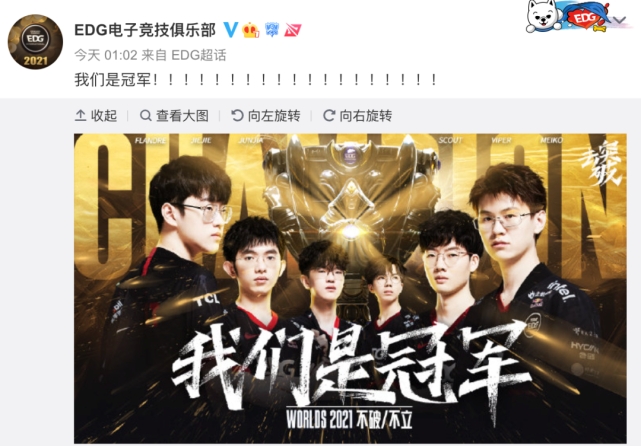 赛前,edg投资公司在官方微博设旗,edg夺冠,每位队员发一套。。